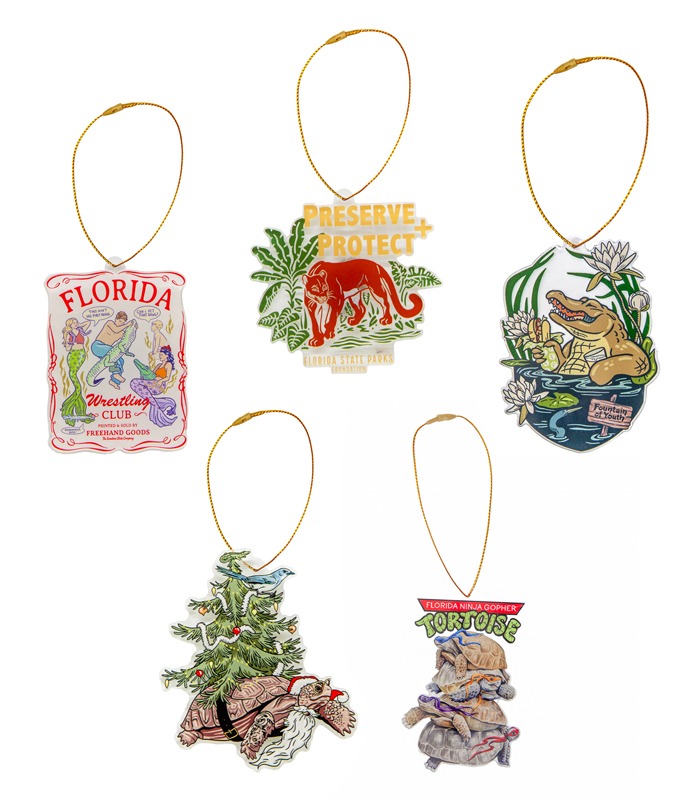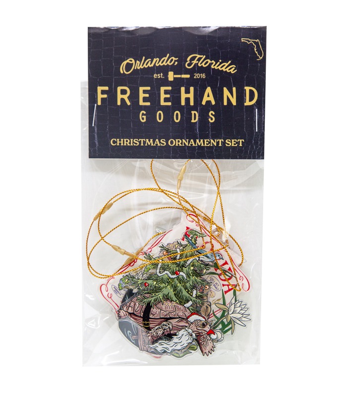 Each & every year, we get into the holiday spirit with the release of a brand new set of acrylic Christmas ornaments. The set of 5 features some of our most popular designs of the year plus V. Steiner’s newest iteration of Santa Seth. So grab the set of five & carry on this Freehand Christmas tradition! The set includes: