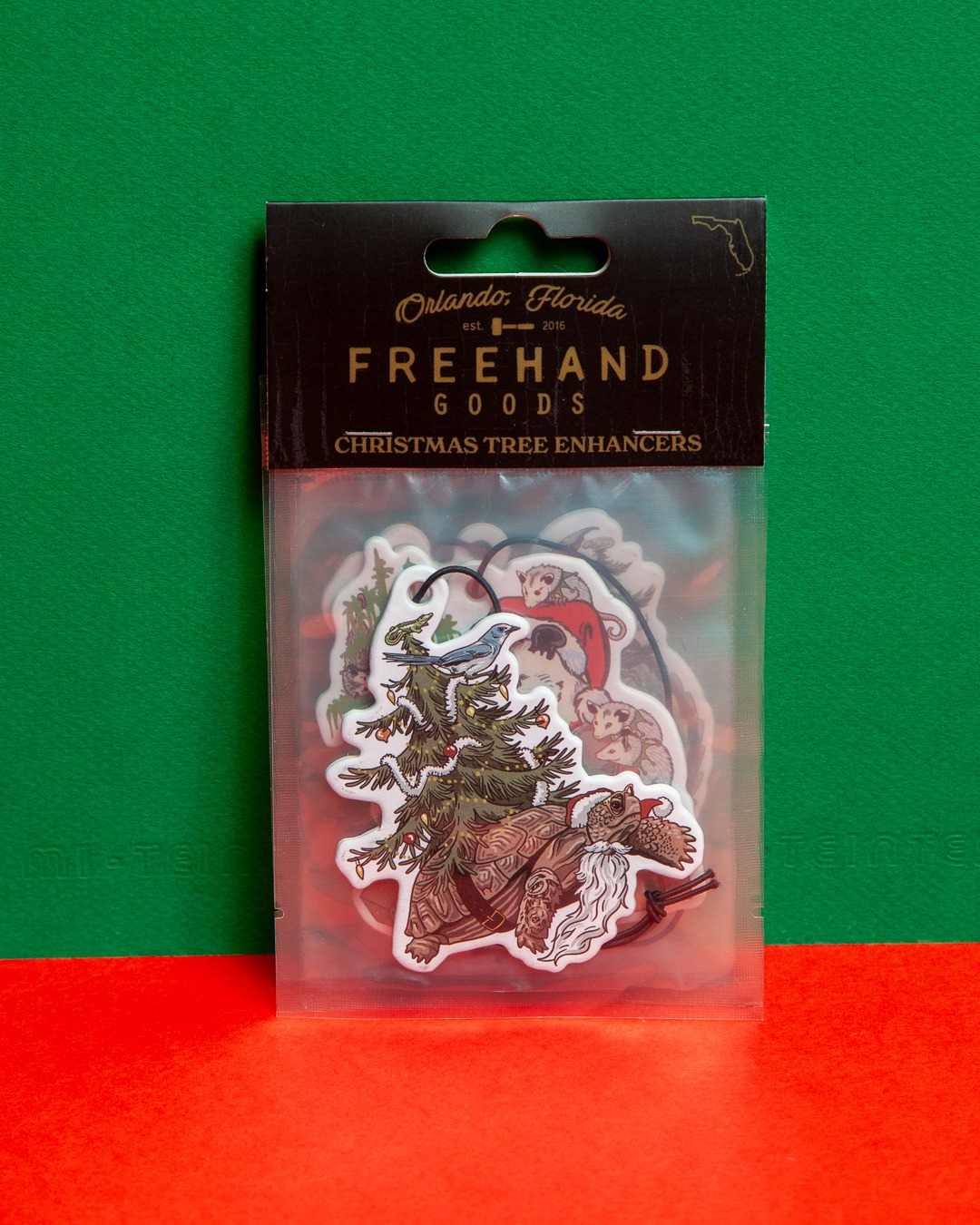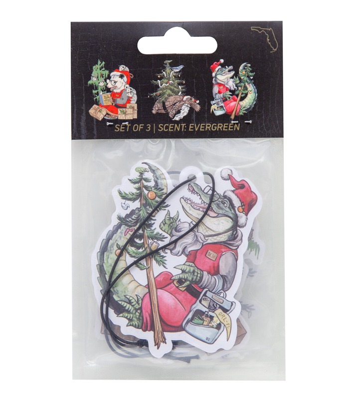 Each year, we get into the holiday spirit with a new set of ornaments but this year, we’ve taken it a step further with our all-new Christmas tree-enhancing ornaments! Our set of 3 evergreen scented air fresheners are as spirited as they are functional. So whether you have a real or fake tree, kick it up a notch with three new ornaments that will fill your room with the scent of evergreen! Original Santa Seth art by V. Steiner.