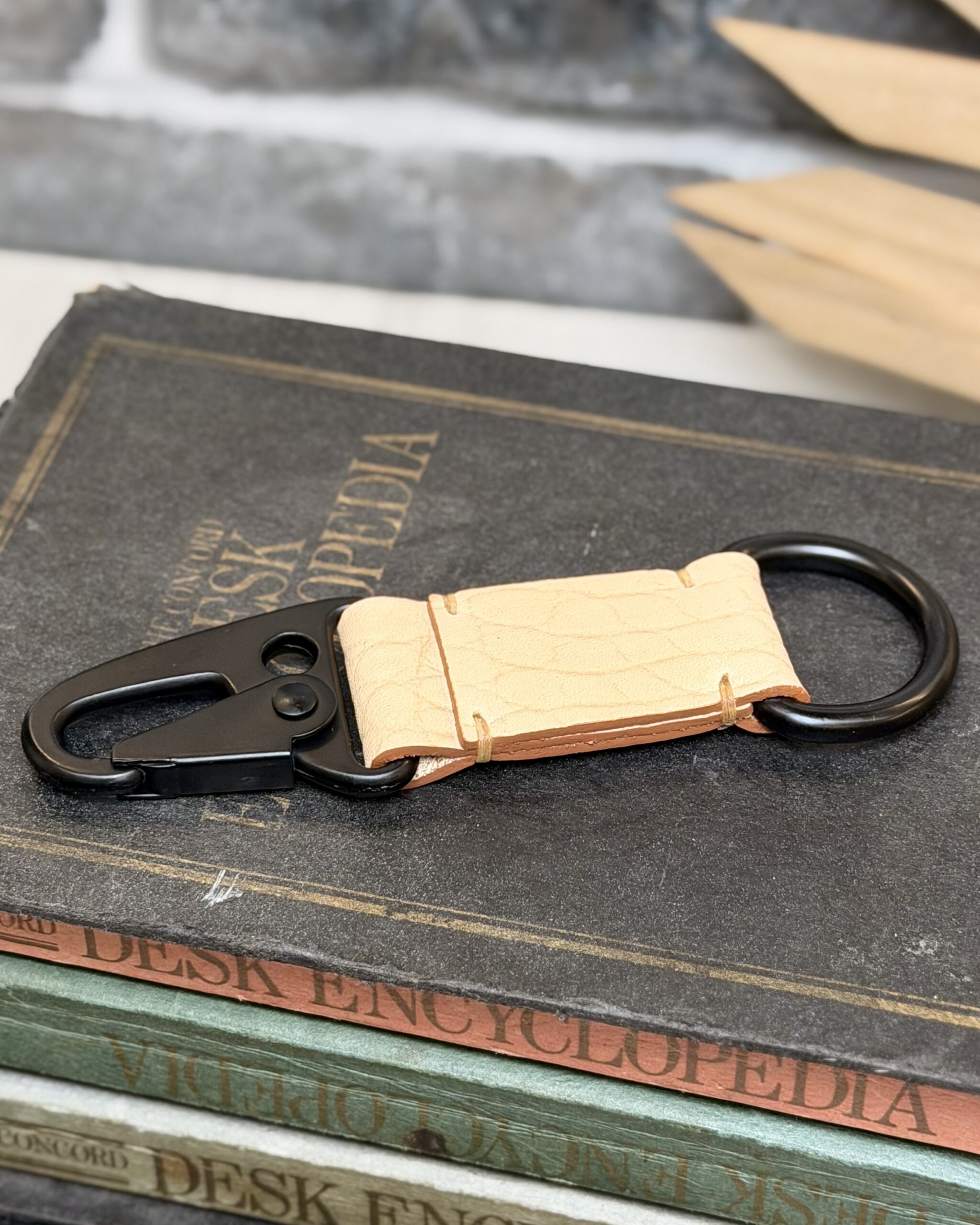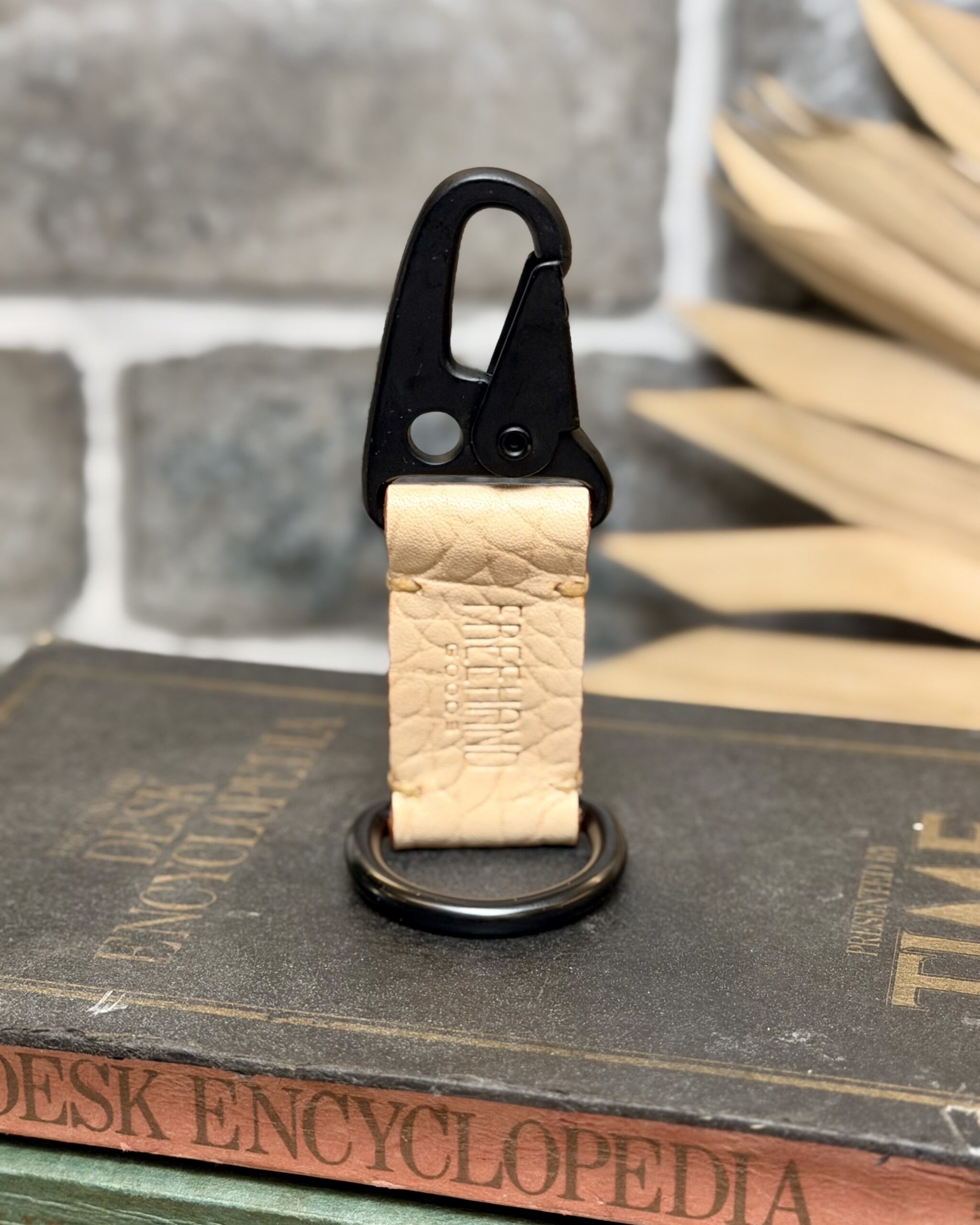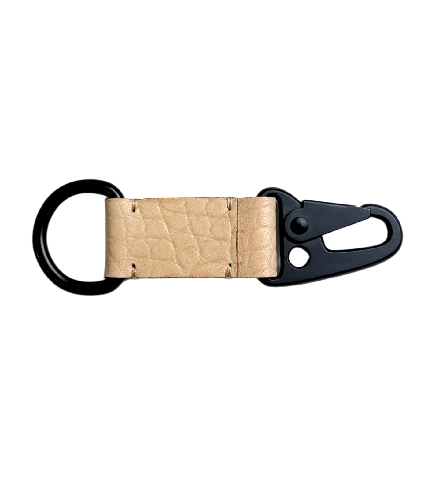 It’s called a gorilla keeper cuz you can go as wild as you want without worrying about anything getting loose. It’s not just practical, we think this beauty is sexy, too. This handmade keychain is made with a special gator skin stamped veg-tan leather and features a spring loaded clip for grabbing your belt loop or a bag and never letting go. Its flat black hardware is connected by leather that’s been treated with vegetable tannins, so this beauty will settle into a gorgeous patina over time. Freehand’s gator stamped leather means exotic without the exotic price tag. The same great veg tan leather, made to look like an exotic alligator hide.