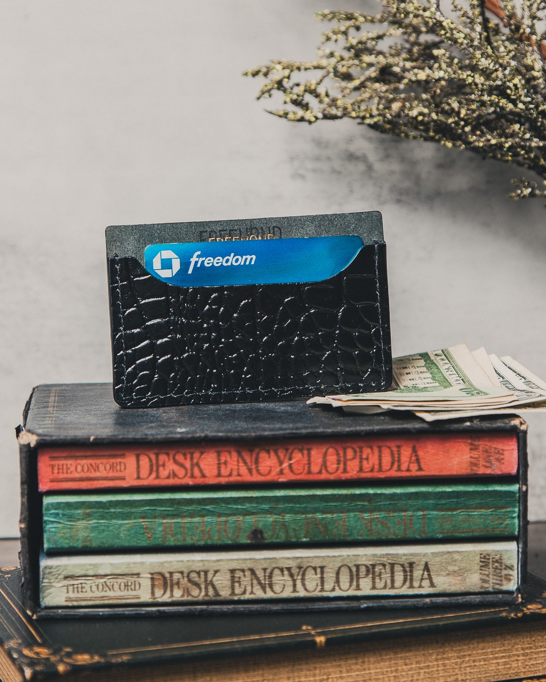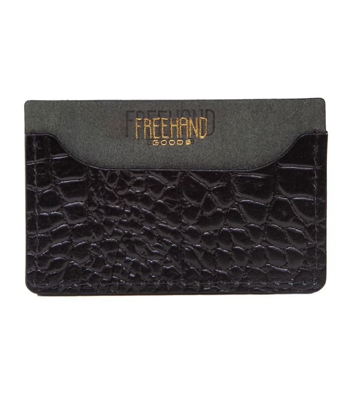 Church up your pockets and get slim with our traditional Colonial cardholder but this one is made with a special gator skin stamped veg-tan leather. Made from rich 100% English Bridle leather, this cardholder has two card slots that fits all standard size cards up to 5 cards per slot, and stitched compartments from military-grade thread, so it’s built for the long haul. Our vegetable-tanned leather means your cardholder will get a rich patina and get sexier with time, just like you. To kick it up one more notch, this cardholder comes stamped with a gold-foil FHG logo.