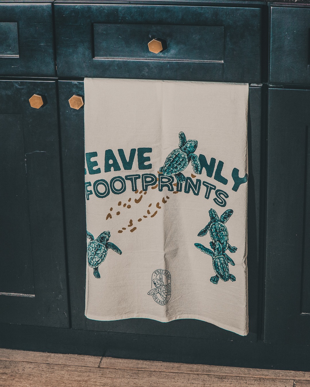 Remind yourself & guests in your home to leave it better than we found it with our newest dish towel. It makes a difference for the largest breeds down to the smallest baby sea turtles. V. Steiner captured all the details in the baby loggerheads making their maiden voyage towards the sea.