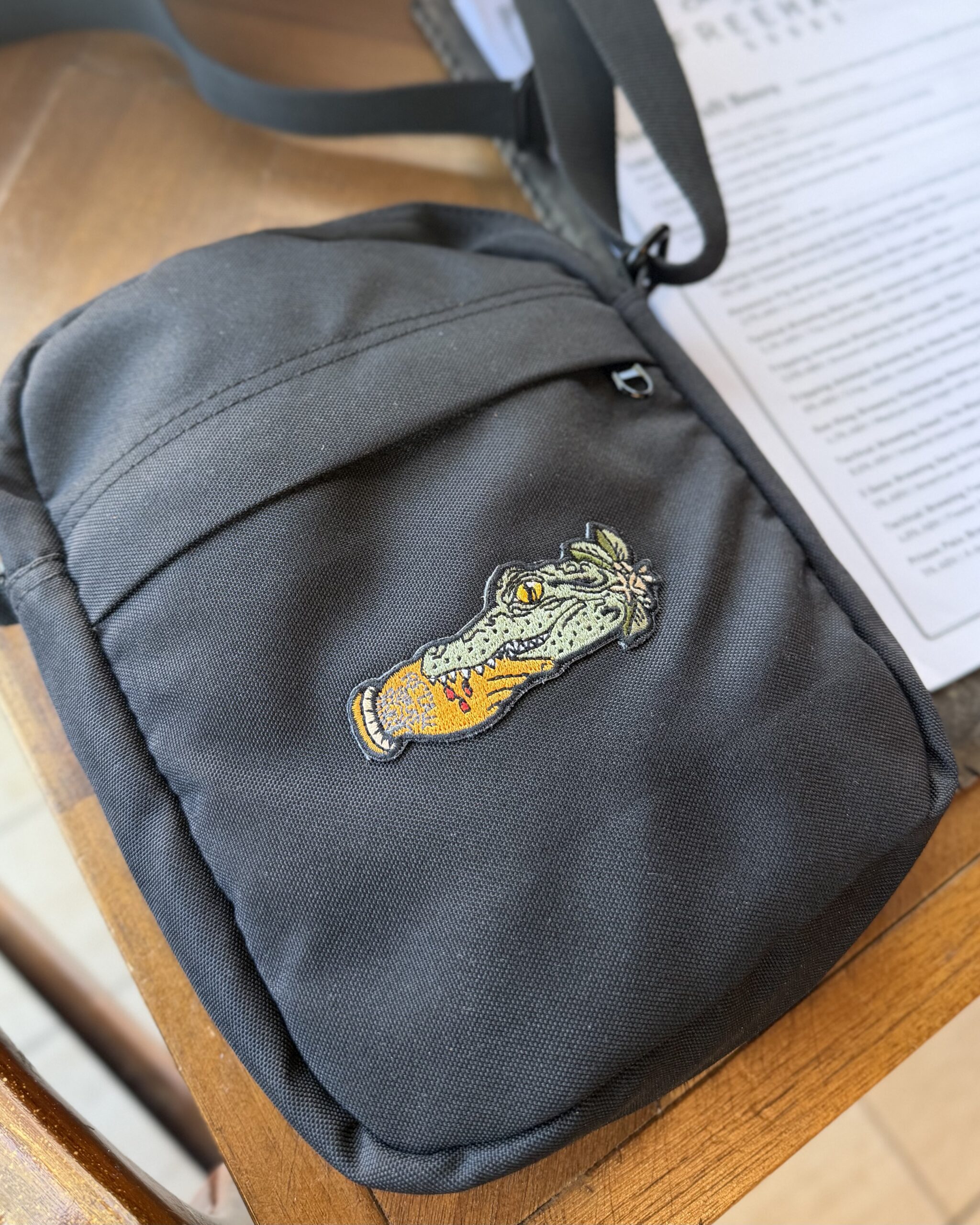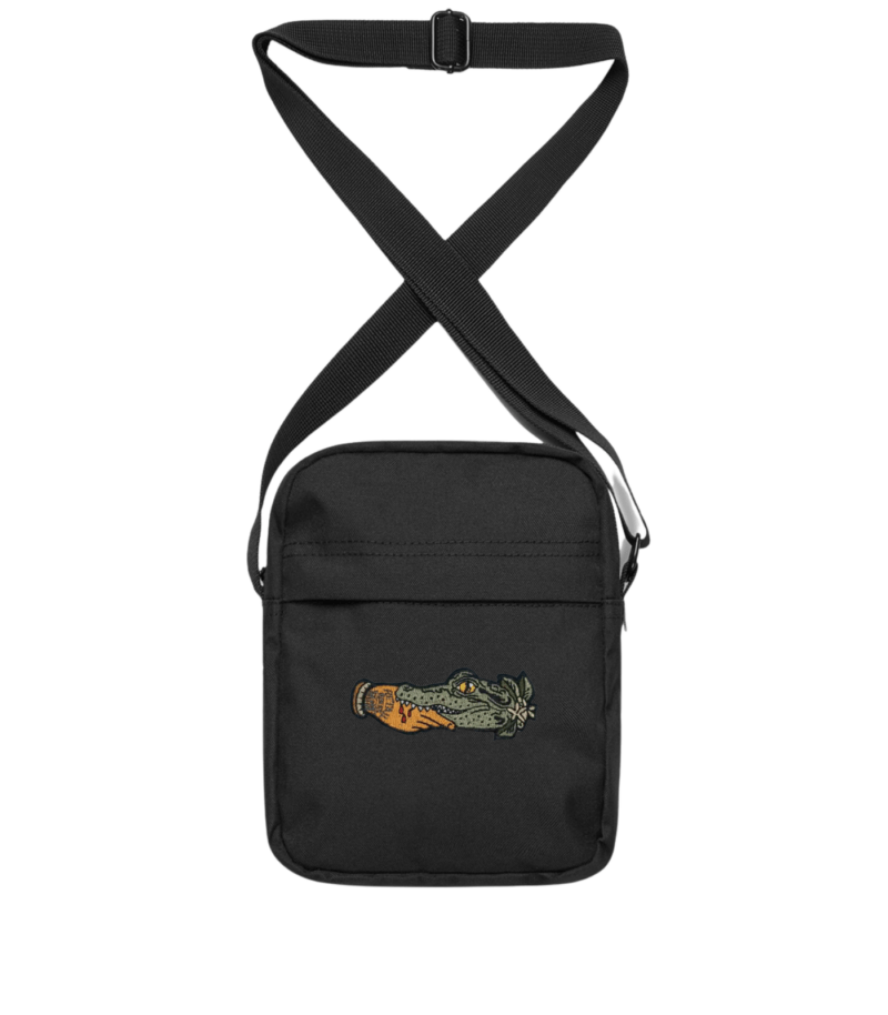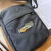 A blast from the past & an American traditional art piece from V. Steiner, now colored in to honor the opening of The Tattoo Shop at Freehand Goods in College Park. This new patched-up crossbody bag is made from 100% recycled polyester with a PU coating. It features one large main compartment, one external zipped pocket, one internal pocket, & an adjustable shoulder strap. Each bag is patched up with our iconic Freehand Goods chestnut veg-tan leather on the backside so you can represent Florida wherever your travels take you. Made in very small batches, these bags are truly unique and built to suit. 7.8″ tall x 6.3″ wide.