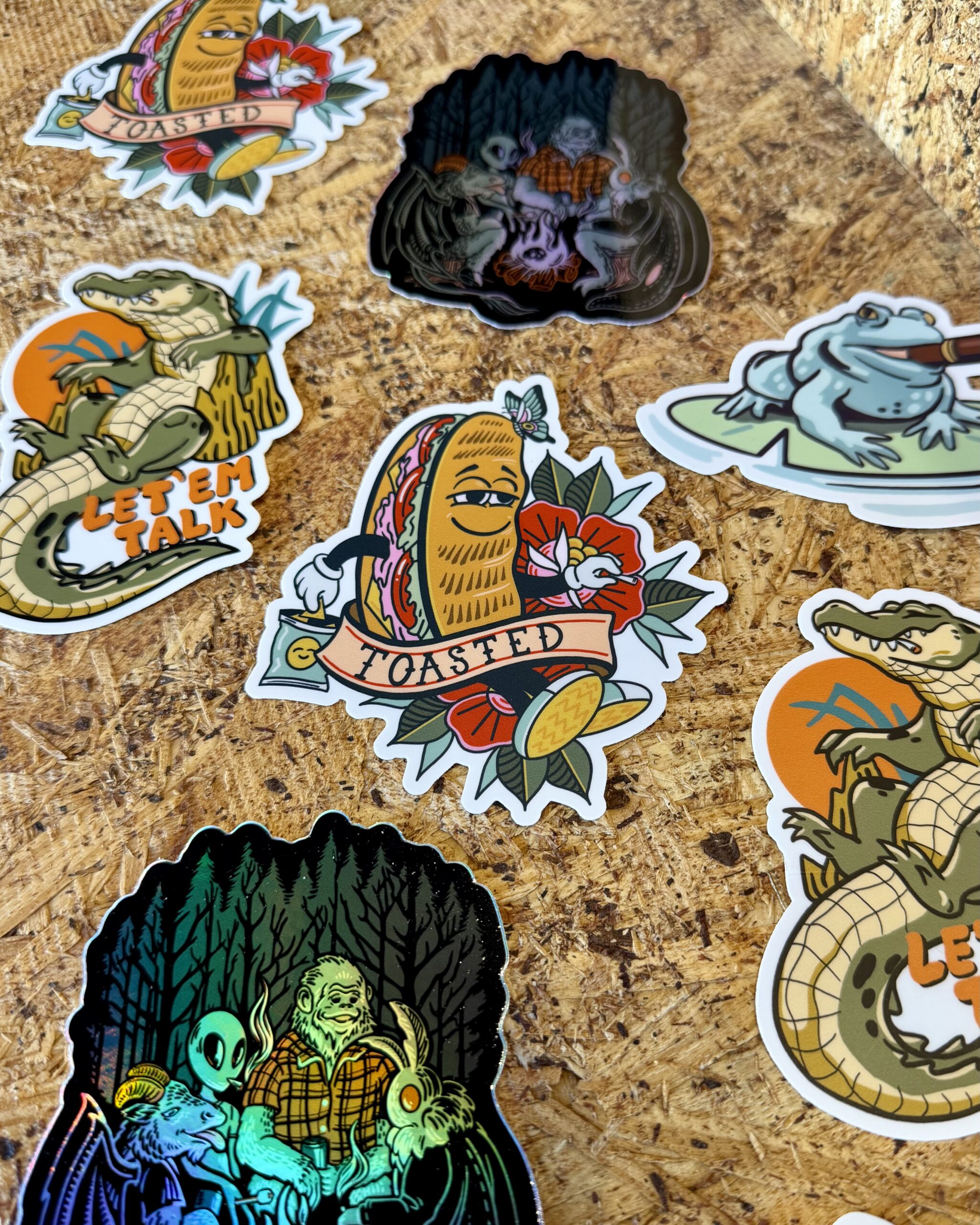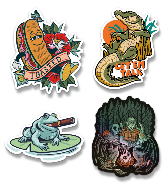What’s included: 4″ Toasted, 4″ Let ‘Em Talk, 4″ Toad & 4″ All My Friends Holographic Sticker