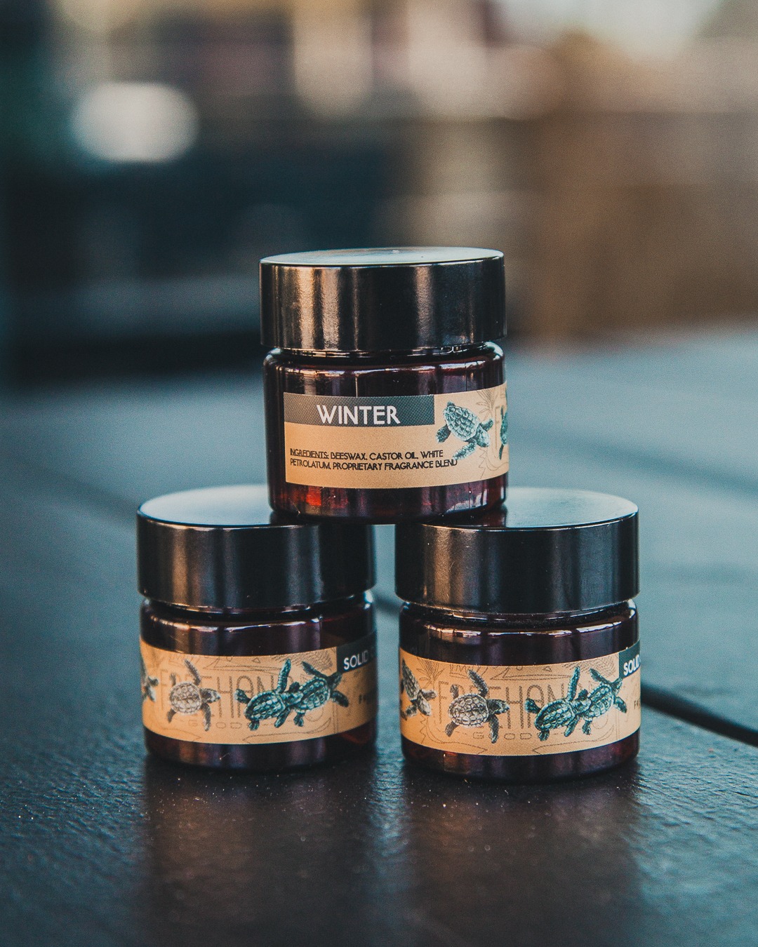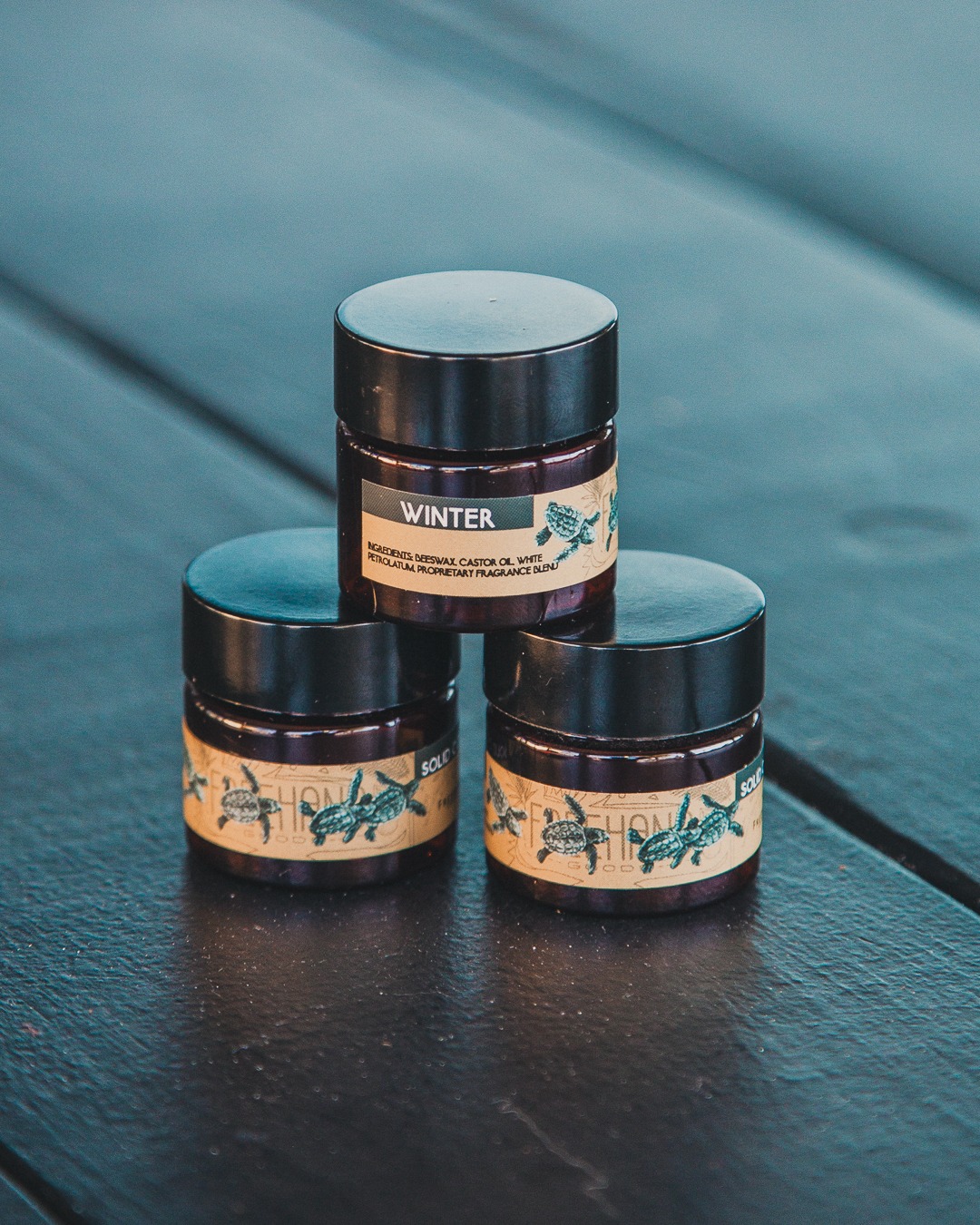 Crisp pine & bright bergamot are accented by warm amber & cashmere on a smoky base of leather & oud wood. Our beeswax-based solid cologne recipe is highly concentrated & boasts a subtle yet powerful sillage & excellent longevity. Original baby sea turtle artwork by V. Steiner.